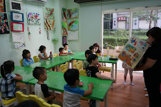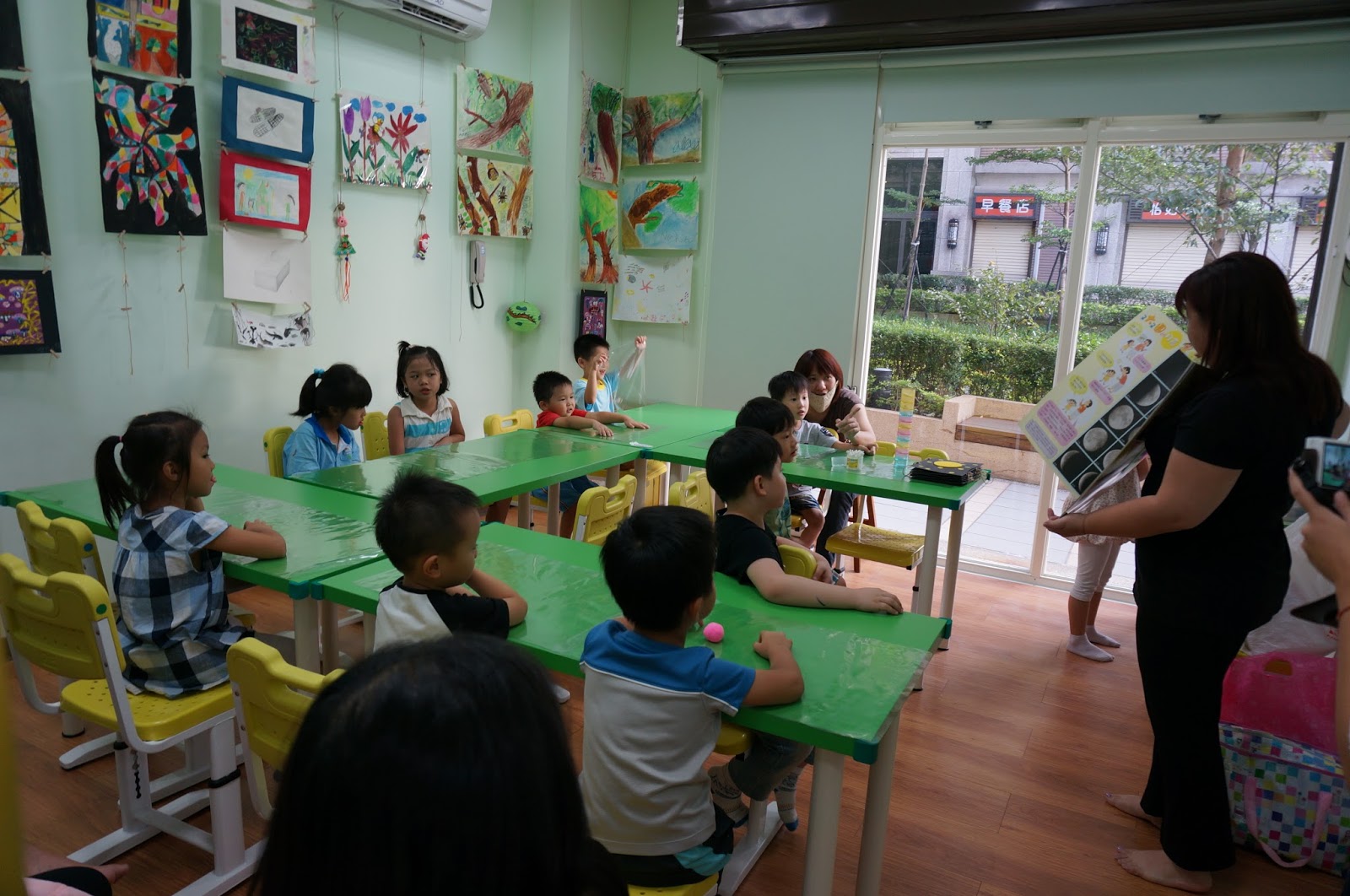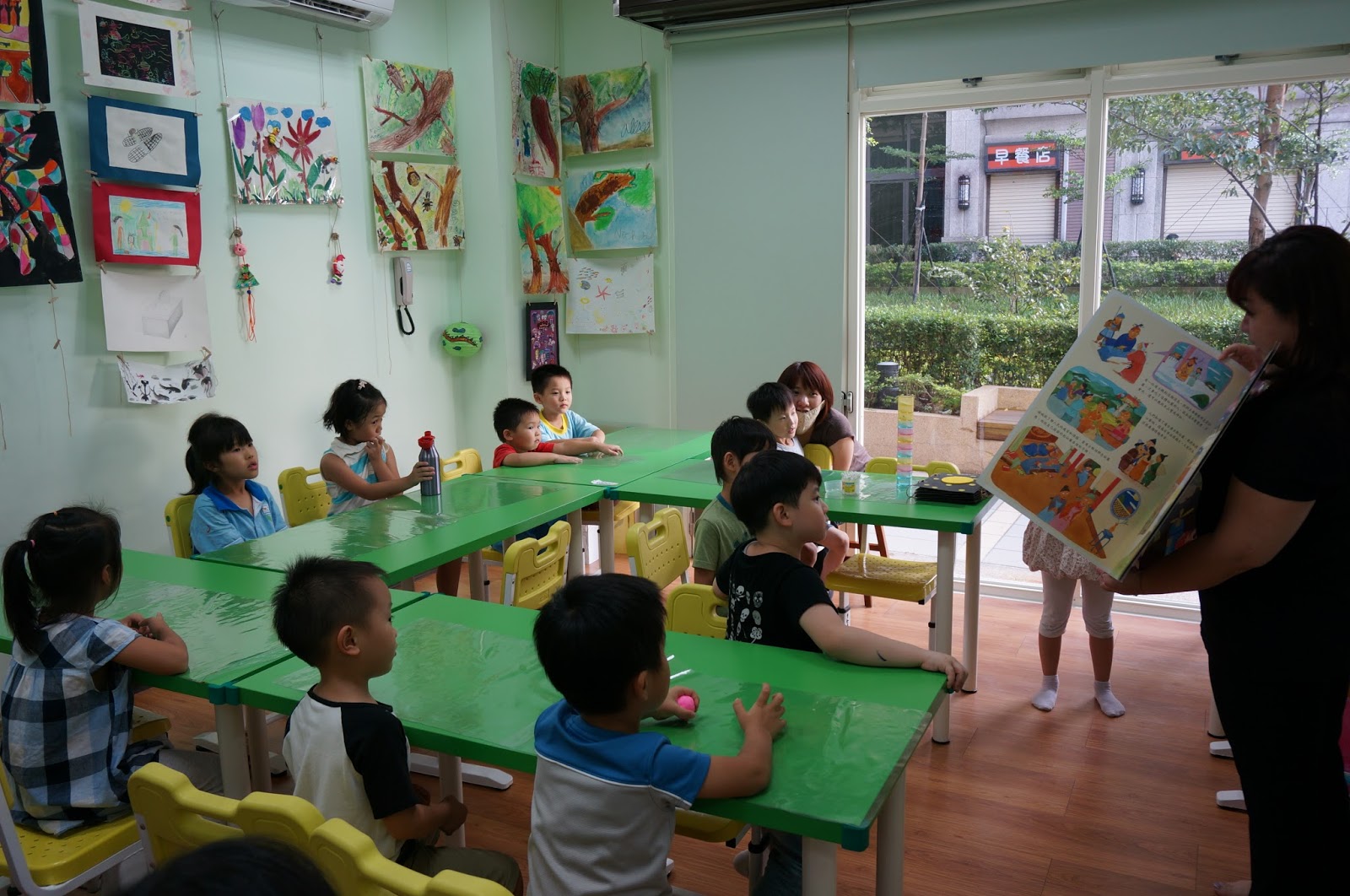 教室有一個大落地窗,採光與視覺透視很好,不會覺得在一個狹隘的空間,這個教室剛好也是曼瑄上美語班的教室,麻麻很喜歡森林語藝,除了教材和老師以外,這個落地窗竟然也是選擇在森林語藝的重要因素之一呢!