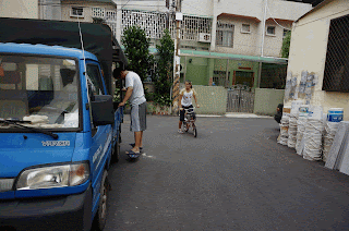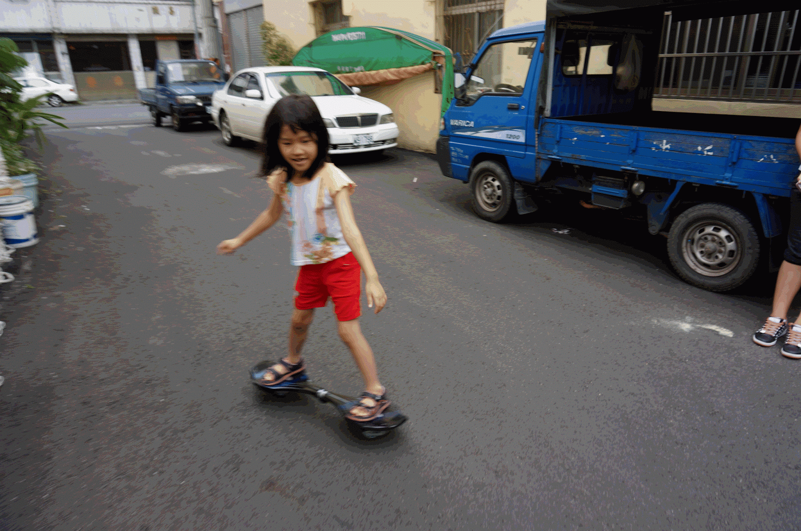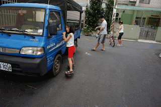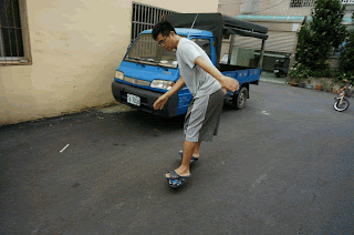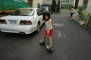 可以滑很遠囉!哇嗚快撞到柱子了