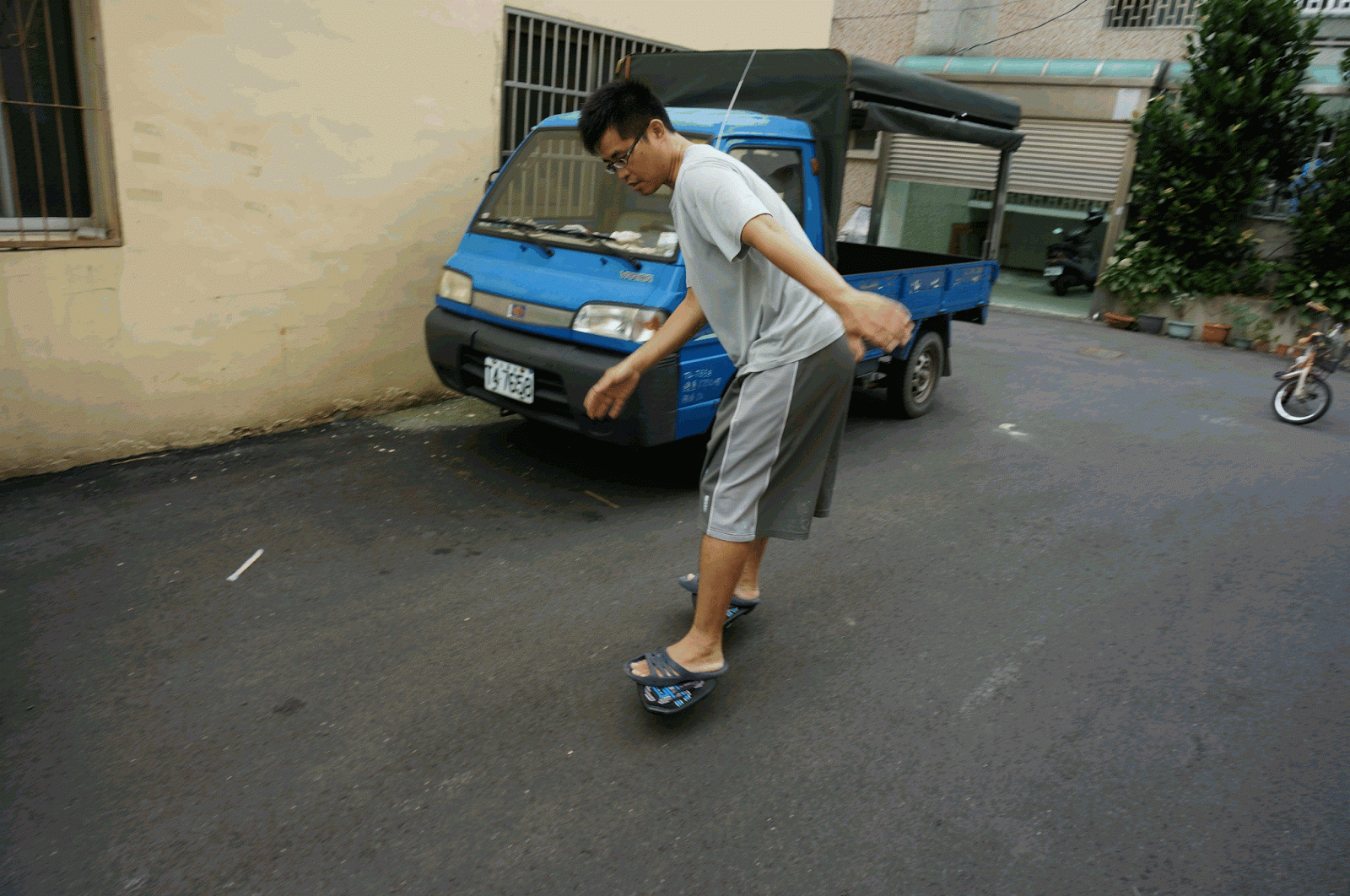 連續扶著車子前進